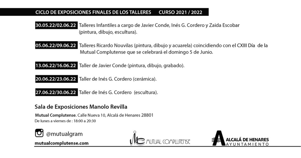 A continuación se detalla el programa de actos del día 6 de junio y las fechas con el Ciclo Expositivo que tendrá lugar en nuestro Espacio de Arte-Sala de Exposiciones Manolo Revilla.